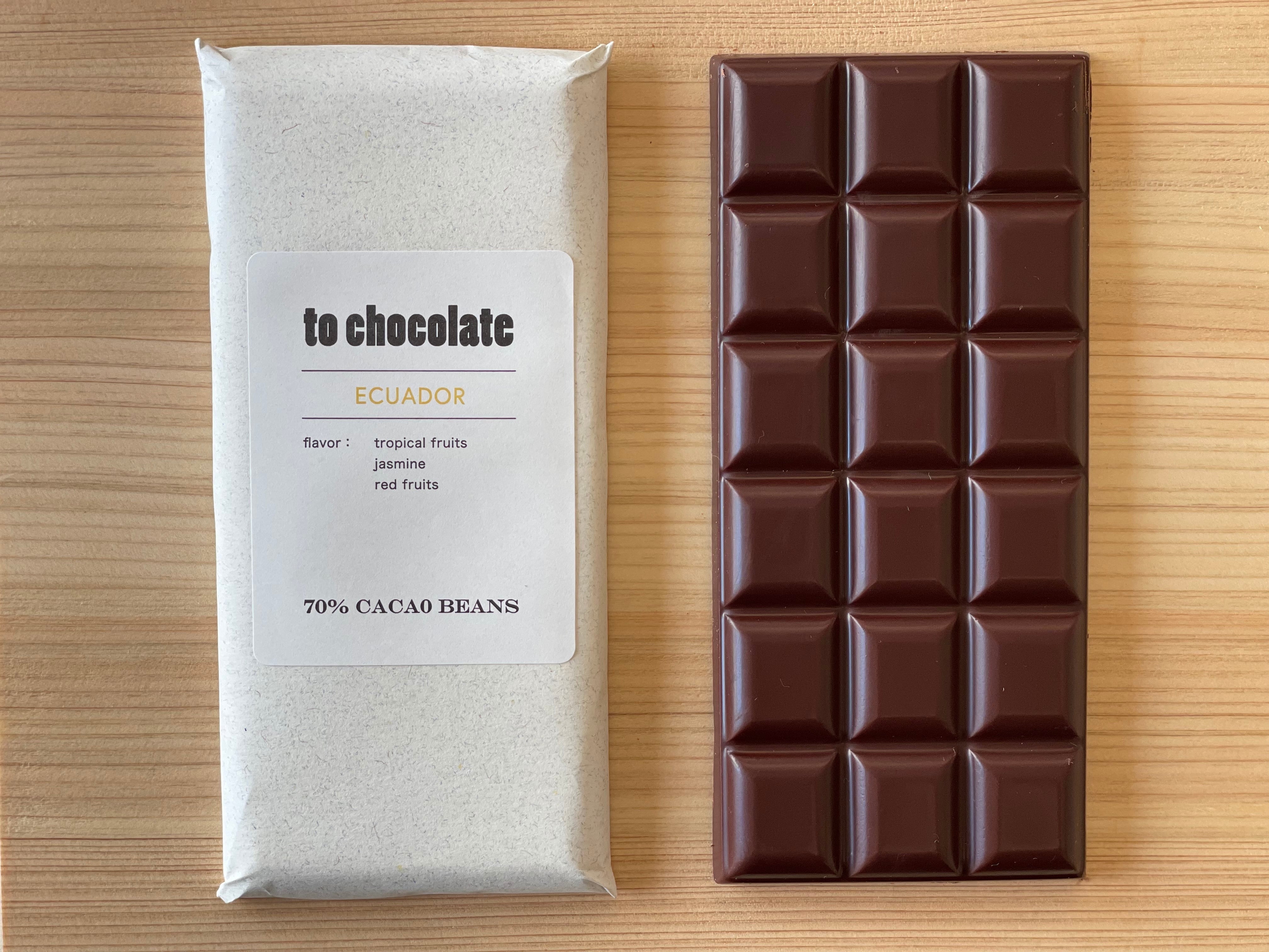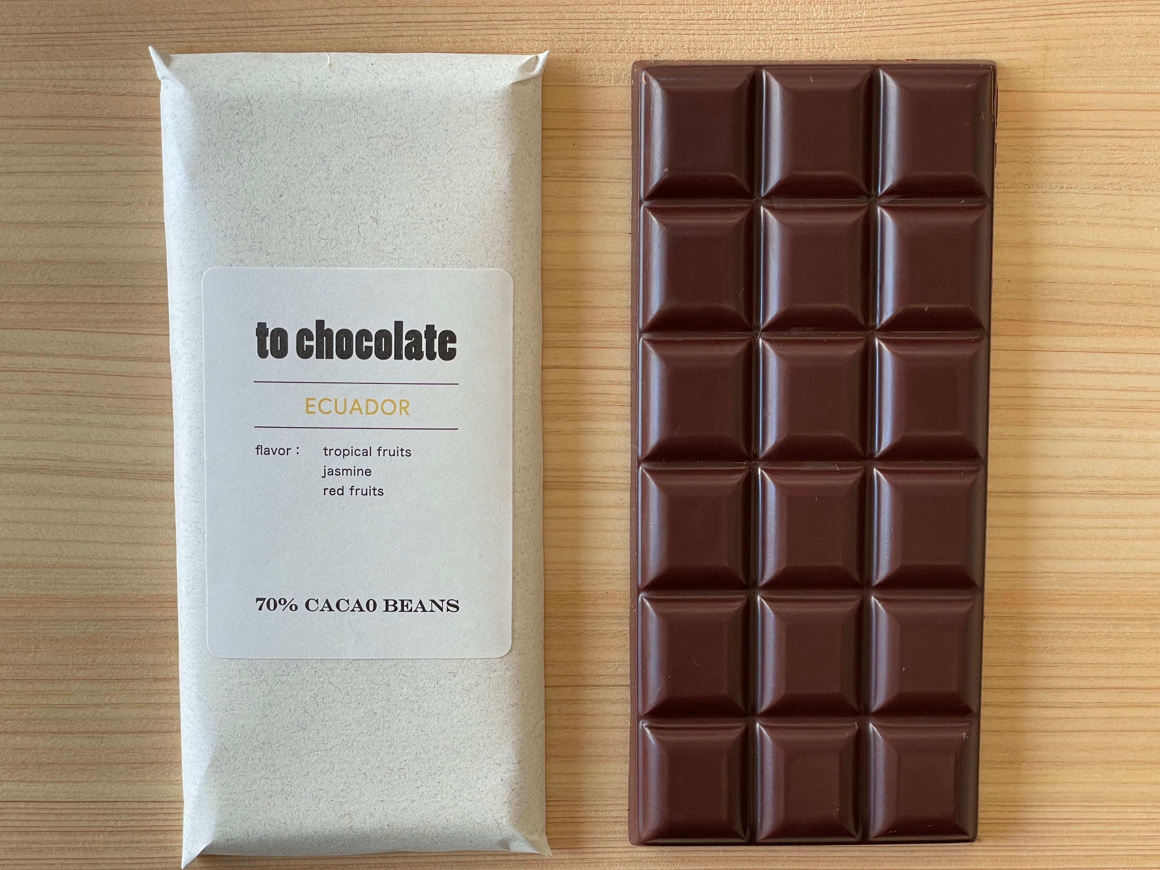 エクアドル産のカカオ豆を使用したチョコレートタブレット。